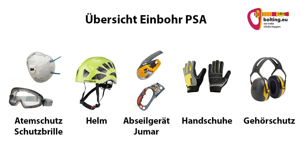 PPE, i.e. “personal protective gear”, is simply a must when bolting. We recommend it:
