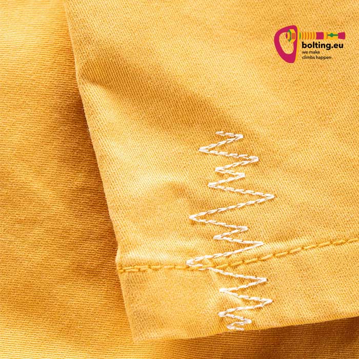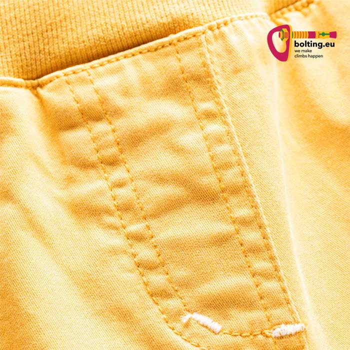 Somit sind sie sehr robust. Weiters aber auch dehnbar. Und abschließend erlaubt der hohe elastische Bund einen Klettergurt darüber anzuziehen.