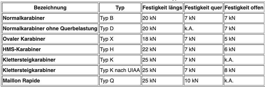 Und zum anderen müssen die jeweiligen Formen auch unterschiedliche Mindest Bruchlasten für Karabiner aushalten. Siehe Tabelle unten!