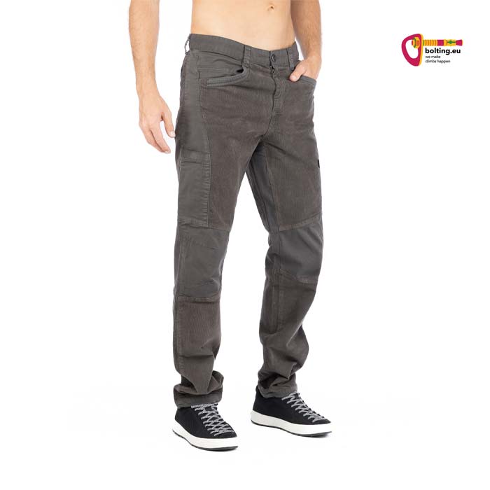 Denn sie ist aus dehnbaren und robusten Cord Stoff gefertigt. D.h. sie macht sowohl beim Bouldern als auch im Klettergarten jede Bewegung gut mit.
