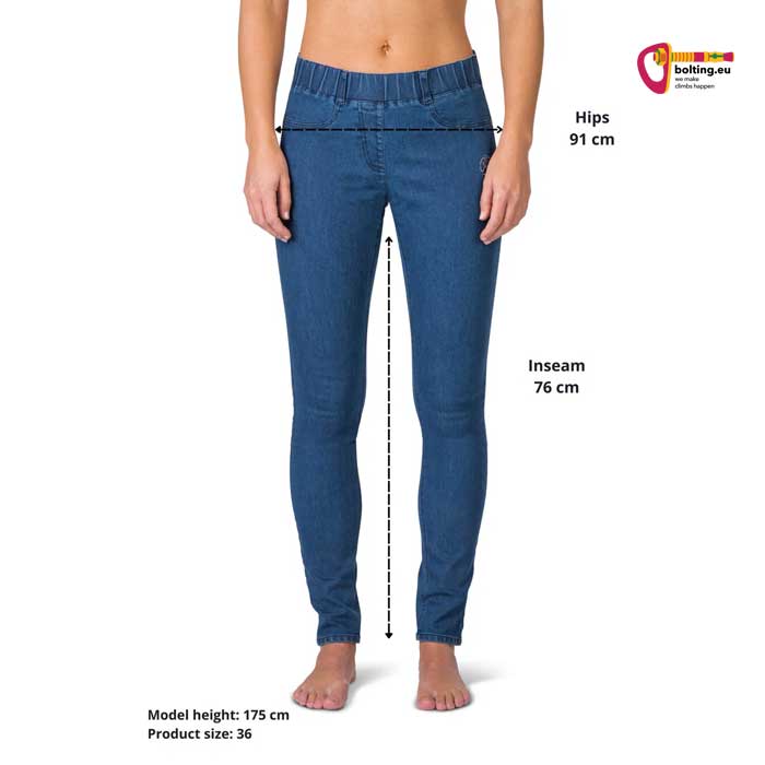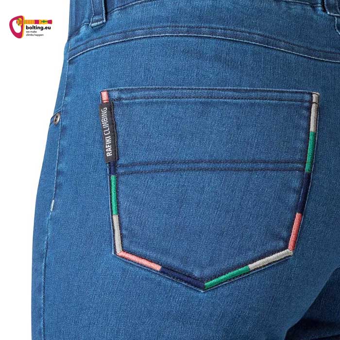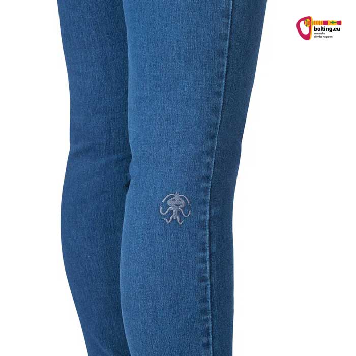 Die Rafiki Evo Lady Jegging ist eine warme Kletter- und Boulderhose. Denn sie ist aus einem etwas dickeren Stretch-Denim gefertigt.