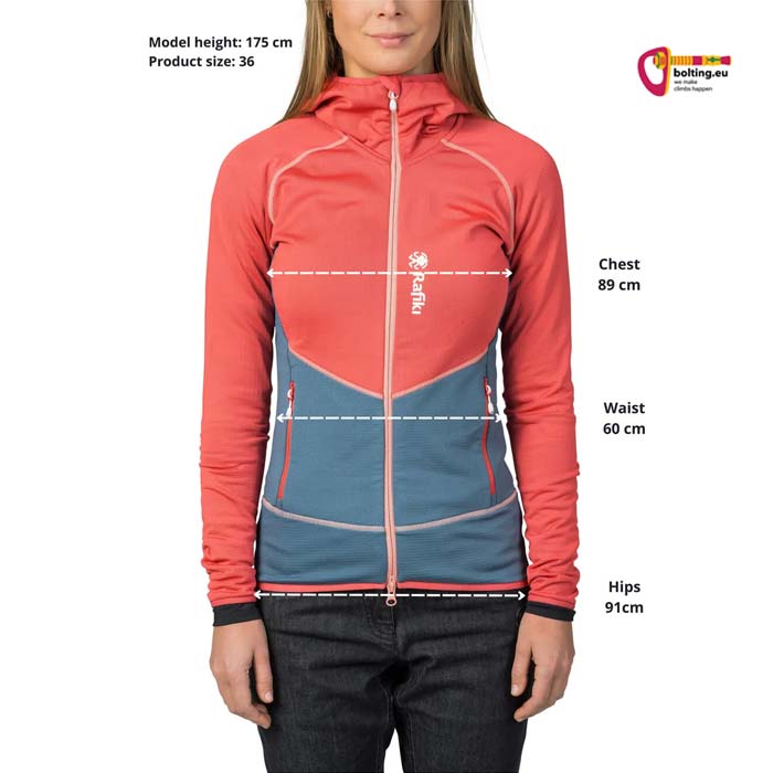 Der Rafiki Linya Full Zip Hoody ist ein tolles Damen Kletter Sweatshirt. Denn es wird als universelle 2nd Layer getragen.