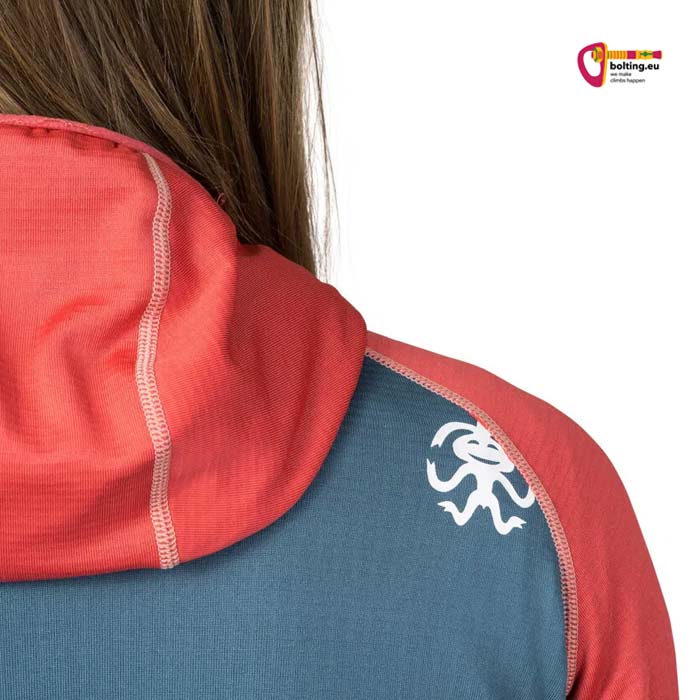 Smart ist der 2 Wege YKK Zip. Denn er kann beim Sichern unten geöffnet werden. Somit könnt ihr das Hoody auch über den Klettergurt anziehen.
