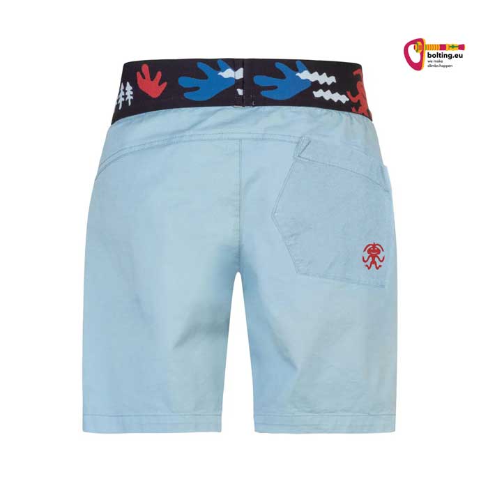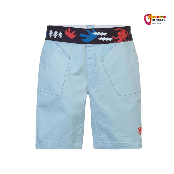 Die kurze Kinderkletterhose wird durch den hohen elastischen Bund schön abgerundet. Denn somit passt perfekt der Klettergurt drüber!