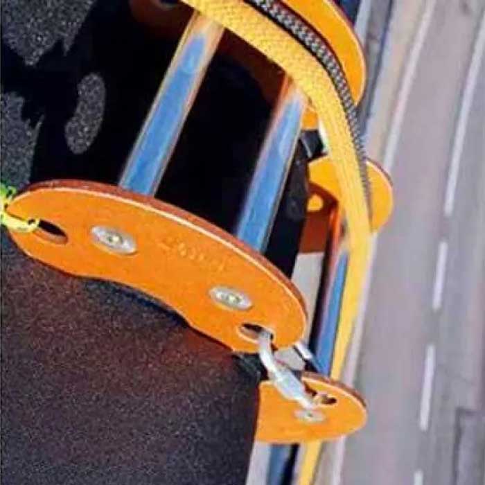Singing Rock Edge Roller Kantenschutz aus drei orange silbernen Aluminium Elementen.