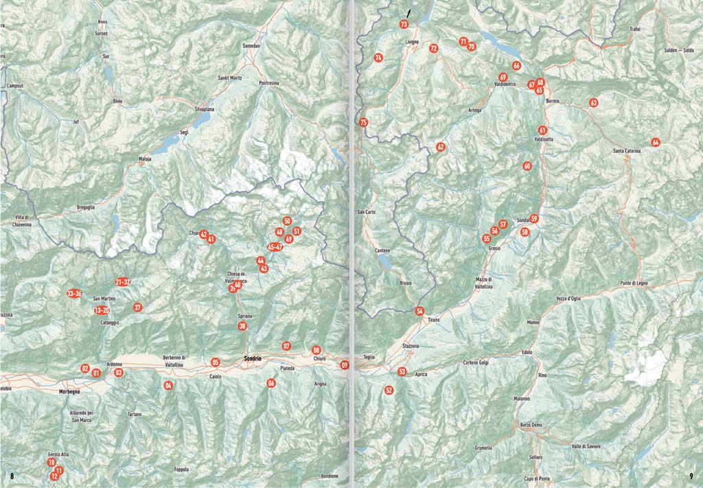 Die folgenden Gebiete sind im „Valtellina Rock“ Kletterführer enthalten.